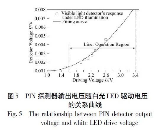 3. 4 可見光通信狀態(tài)時輸出電壓的線性區(qū)測試